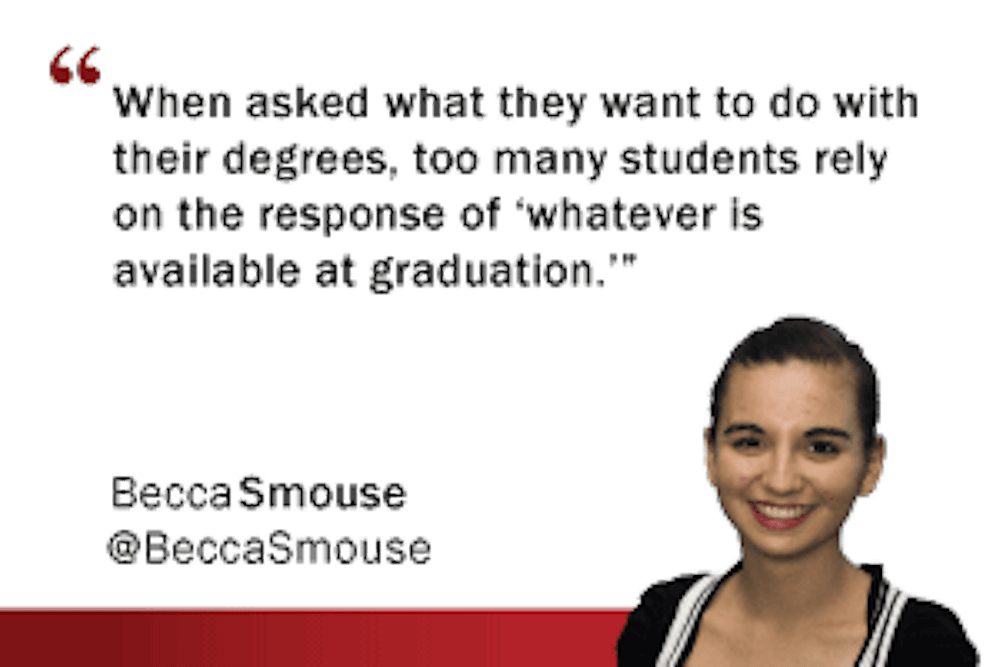 Thinking about what jobs will be available come graduation is also a scary thought. When asked what they want to do with their degrees, too many students rely on the response of “whatever is available at graduation.”