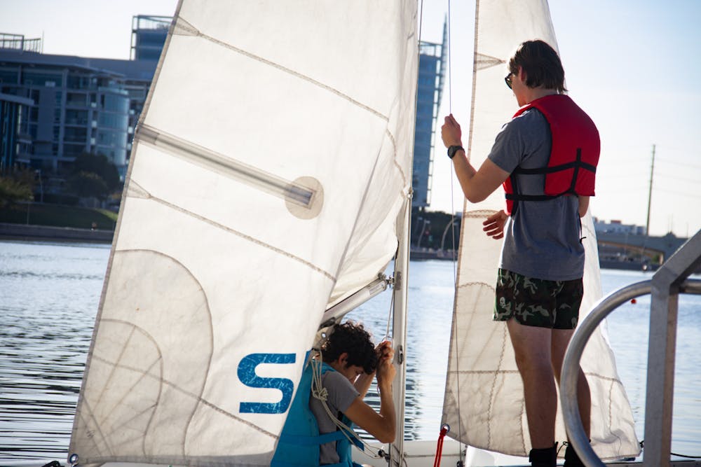 Though the infamous Tempe Town Lake can often be seen as a comedic accessory to the Valley, its facility serves many maritime organizations in Tempe, including the University's club team, Sailing at ASU. While the lake is not ideal for optimal seafaring activity, the team has adapted by implementing multiple practice measures as they learn how to sail beyond the desert.