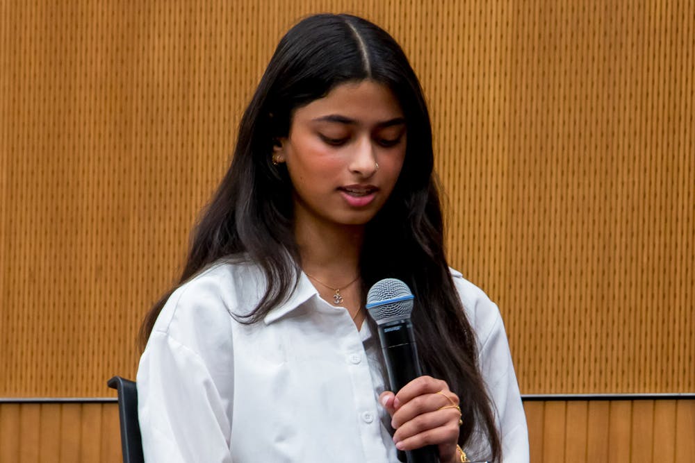 Neha Ponapalli, candidate for Vice President of Service, speaks at the USG Executive Ticket debate in the Senita Ballroom in Tempe on Tuesday, March 25, 2025 in Tempe.