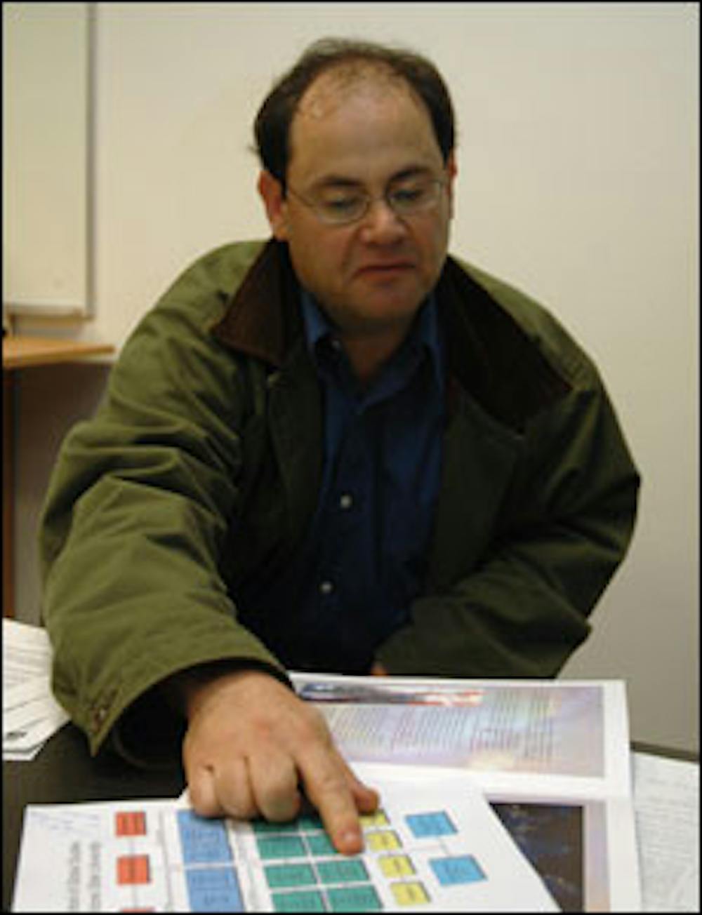 David Jacobson, the acting director for the new school of global studies, uses a chart to illustrate different concentrations within the program.