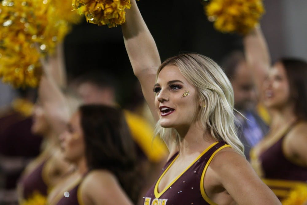 A member of the ASU Spirit Squad cheers at a game against the California Golden Bears in Sun Devil Stadium in Tempe, Arizona, on Saturday, Sept. 24, 2016.