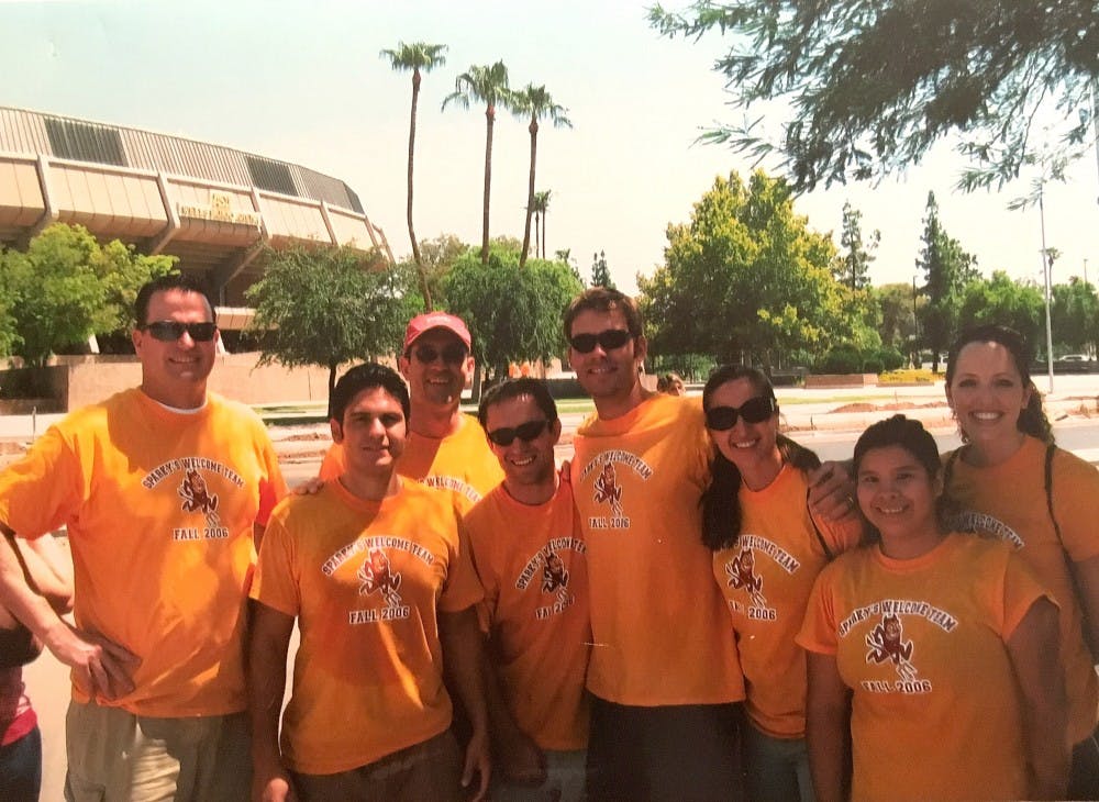 Hope Church members, including Ashley Perea, second from right, pose for a photo in front of Wells Fargo Arena.