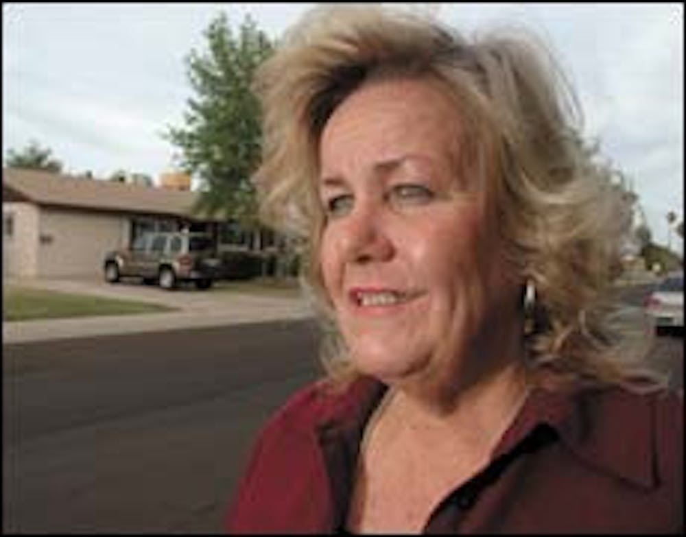 Darlene Justus, 60, president of the North Tempe Neighborhood Association, says the college students who rent the house pictured behind her let their lawn get overgrown. "They do not have time for lawn care," Justus said. "They are busy."