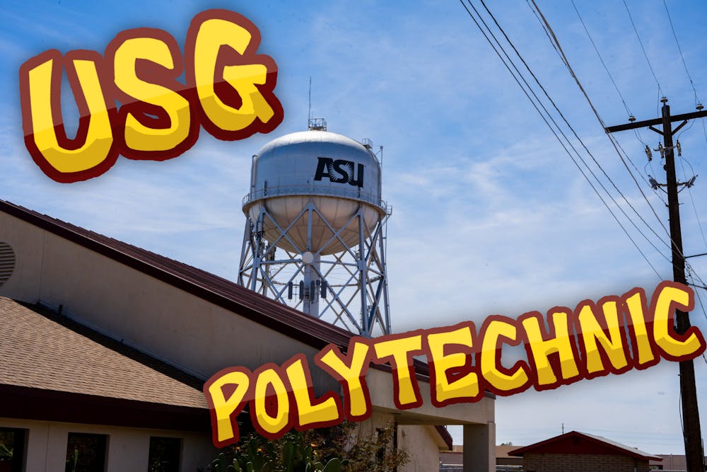 The water tower on the ASU Polytechnic campus on Wednesday, April 14, 2021, in Mesa. Additional illustrative elements added on Wednesday, March 25, 2026.