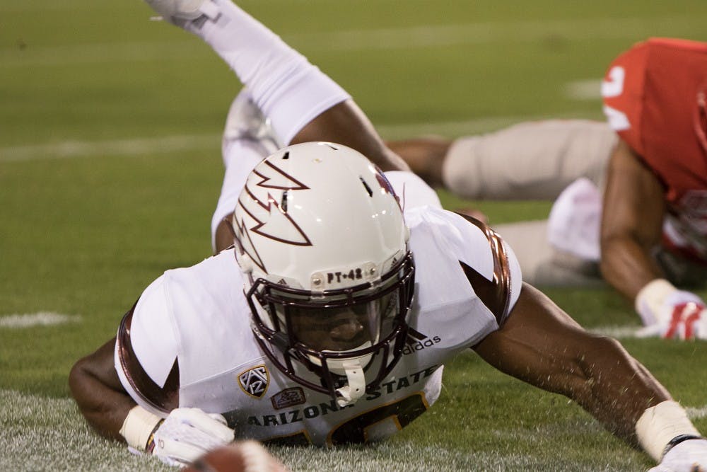 Senior defensive back Kweishi Brown dives after an errant pass against New Mexico on Friday, Sept. 18, 2015, at Sun Devil Stadium in Tempe.