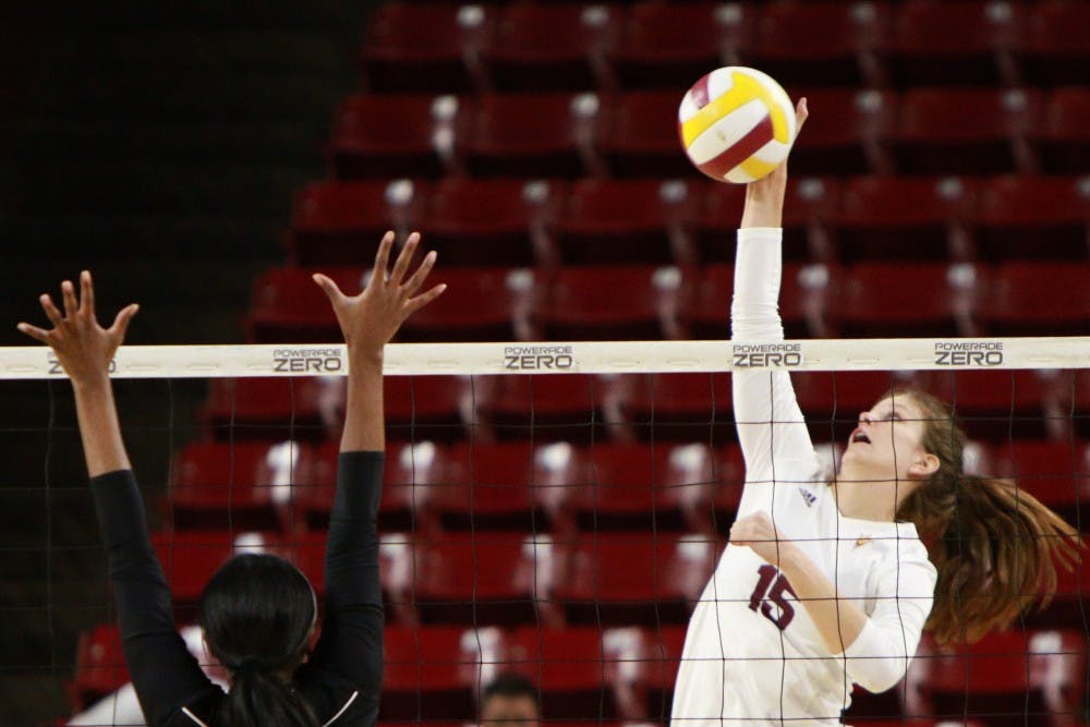 against Texas Southern Saturday, Sept. 19, 2015 at Wells Fargo Arena in Tempe. The Sun Devils defeated the Lady Tigers three games to none (25-15, 25-17, 25-8).