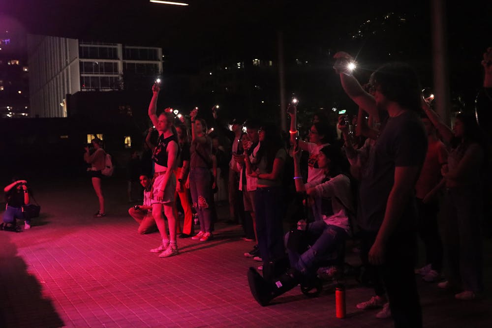The audience holds up their cellphone flashlights to a song at Battle of the Bands on Thursday, Feb. 27, 2025 in Phoenix.