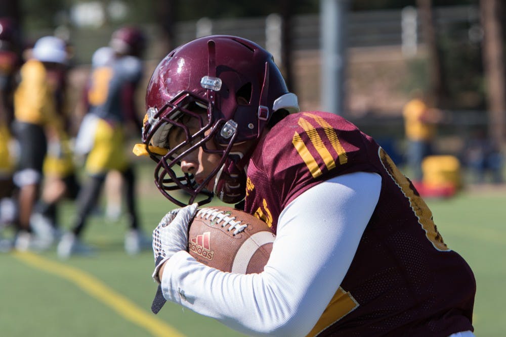 Redshirt freshman Jalen Harvey runs after catching a pass during Camp Tontozona practice Wednesday August 12, 2015 at Rumsey Park in Payson, Arizona. (Jacob Stanek/The State Press)