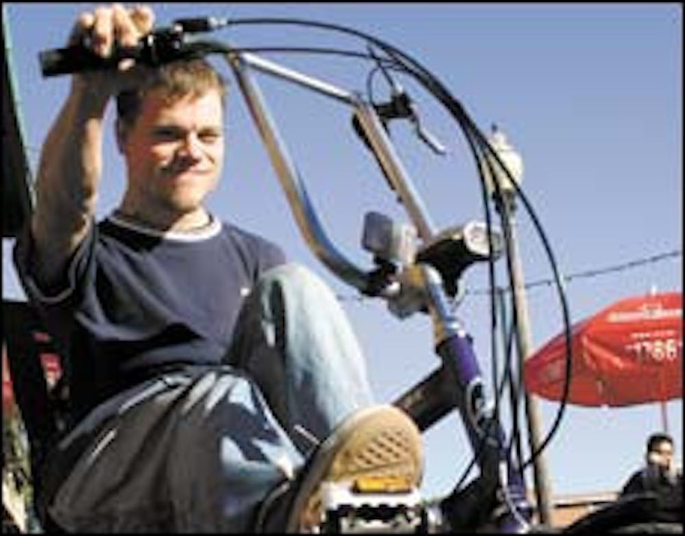 Jesse Ballew, a geography senior, received a new bicycle Wednesday from friends at local bars and restaurants on Mill Avenue after his was stolen in late November.