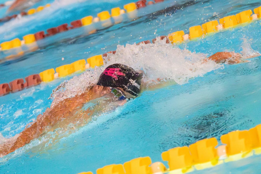 An Arizona State swimmer competes in a freestyle heat during the Sun Devils’ meet at Mona Plummer Aquatic Center on Oct. 3, 2025, in Tempe. – Anthony Cavale