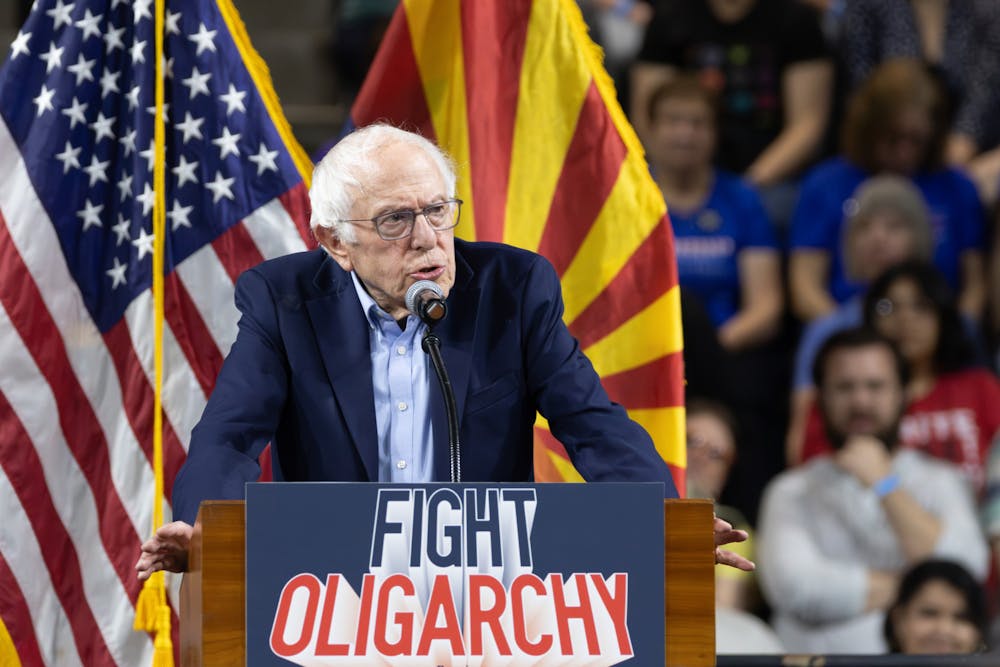 Sen. Bernie Sanders giving a speech at the 'Fight Oligarchy' rally at Mullett Arena on Thursday, March 20, 2025 in Tempe.
