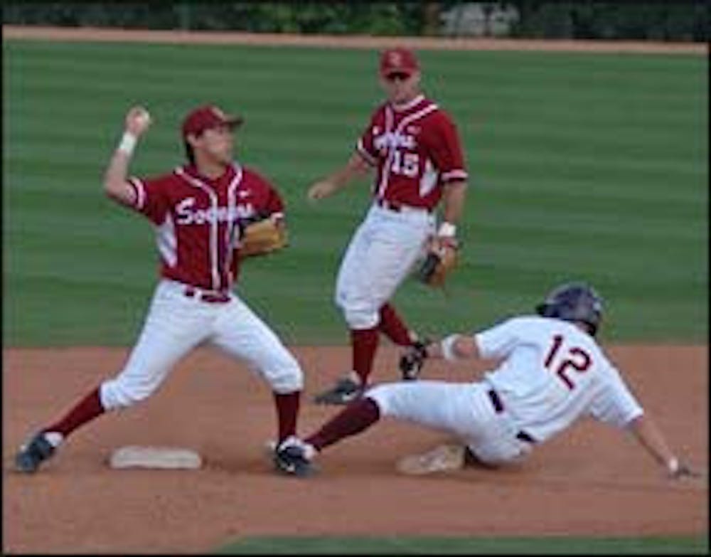 Freshman shortstop Andrew Romine tries to break up a double play during ASU's 6-5 win over Oklahoma on March 20 at Packard Stadium. The Sun Devils take on Wright State in a three-game series this weekend.