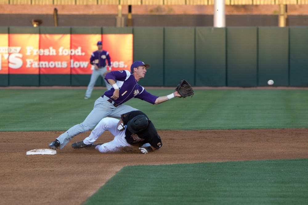 Senior Joey Bielek slides safely into second base for a stolen base in the bottom of the first inning against Tennessee Tech Friday April 24, 2015 at Phoenix Municipal Stadium. The Sun Devils defeated the Golden Eagles 6-3.