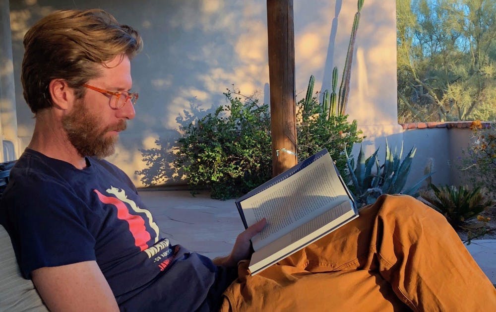 ASU literature professor Chris Hanlon reads a book in Cave Creek, Arizona in January of 2018. Hanlon recently spoke out on twitter about campaign internship listings sent over ASU email accounts that he allegedly broke state law.