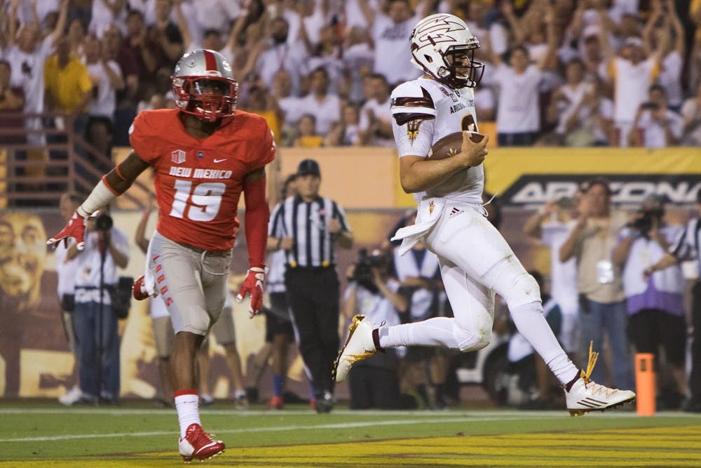 Redshirt senior quarterback Mike Bercovici rushes for a touchdown on Friday, Sept. 18, 2015, at Sun Devil Stadium in Tempe.