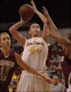 Aldei Gregoire / THE STATE PRESS ASU freshman left-hander Katie Burkhart narrowly missed pitching a no-hitter Wednesday in the first game of a doubleheader against Eastern Michigan at Farrington Stadium. She gave up one run on one hit to earn her fourth win of the season.