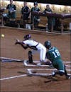 ASU freshman J.J. Sferra gets tagged out by Oklahoma freshman catcher Jackson Williams in the eighth inning of the Sun Devils' 6-5 win on Sunday at Packard Stadium.