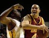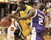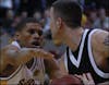 Aldei Gregoire / THE STATE PRESS ASU senior guard Steve Moore drives toward the lane against Washington junior guard Nate Robinson on Sunday at Wells Fargo Arena.