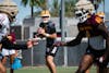 ASU freshman quarterback Jake Fette (2) looks for a pass at spring practice on Tuesday, April 7, 2026 at Kajikawa practice fields, in Tempe.
