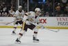 ASU sophomore forward Cullen Potter (12) looking for a pass on Saturday, Nov. 8, 2025, at Mullett Arena in Tempe. ASU lost 3-1.