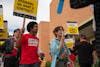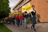 Protesters form a picket line outside the Memorial Union on Thursday, Nov. 13, 2025, in Tempe.