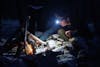 Arizona Outdoors Club member Justin Weidmann lights a fire at a campsite outside the Chiricahua National Monument on Saturday, April 5, 2025 in Willcox, Arizona.