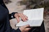 The State Press Community reporter Audrey Lippert reads through a notebook containing messages left by hikers in Chiricahua National Monument on Sunday, April 6, 2025 in Willcox, Arizona.