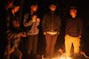 From left to right, Arizona Outdoors Club members Samuel Ingram, Jaddison Jordan, Will Green and Justin Weidmann gather around a campfire outside the Chiricahua National Monument on Saturday, April 5, 2025 in Willcox, Arizona.