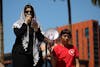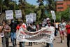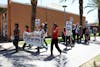 Protesters march across the ASU Tempe campus on Wednesday, April 9, 2025 in Tempe.
