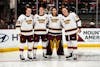 Bennett Schimek (left), Cruz Lucius (center-left), Connor Hasley (center-right) and Tucker Ness during ASU Senior Day at Mullet Arena on Saturday, February 21, 2026, in Tempe.