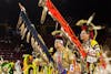 Nelson Baker (left) and Sidrick Baker Jr. (right) participating in the 36th Annual Pow Wow at ASU inside the Desert Financial Arena on Saturday, April 5, 2025, in Tempe.