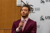 Martin Hammond, candidate for USG-Tempe Vice President of Service, speaks at the USG Executive Ticket debate in the Senita Ballroom on Tuesday, March 25, 2025 in Tempe.