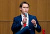 Hayden Darst, candidate for USG-Tempe Vice President of Service, speaks at the USG Executive Ticket debate in the Senita Ballroom on Tuesday, March 25, 2025 in Tempe.
