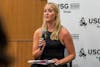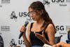 Cayla Kirchbaum, candidate for USG-Tempe President, speaks at the USG Executive Ticket debate in the Senita Ballroom on Tuesday, March 25, 2025 in Tempe.
