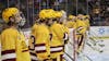 ASU hockey team lined up at a game against University of Nebraska Omaha at Mullet Arena on Saturday, Nov. 16, 2024, in Tempe. ASU lost 4-2.