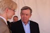 ASU President Michael Crow speaks to The State Press at the announcement of the new ASU Health facility on Monday, Mar. 10, 2025, in Phoenix.