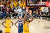 Sophomore forward Jayden Quaintance (21) shoots a free throw during a game against UA at Desert Financial Arena on Saturday, Feb. 1, 2025, in Tempe. ASU lost 81-72.