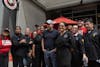 Demonstrators form a picket line outside of Gordon Commons on Wednesday, April 9, 2026, in Phoenix.