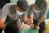 President Kevin Tobias (left) and Vice-President Long Liu (right) of Smiles Abroad at ASU work with a patient on Tuesday, May 20, 2025, in Chimaltenango, Guatemala.