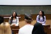 Undergraduate Student Government Downtown student body president candidate Rei Tedoco (left) and Katie Ritchie (right) speaking at the USGD debate at the Student Center at The Post Office on Monday, Mar. 23, 2026 in Downtown Phoenix.