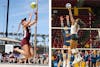 ASU senior Daniella Kensinger (95) (left) and ASU junior opposite hitter Noemie Glover (10) (right) in matches during the Fall 2025 and Spring 2026 semesters.