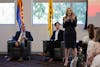 Joanne Vogel responds to a question during a forum with Michael Crow at Memorial Union on Tuesday, Mar. 25, 2025 in Tempe.