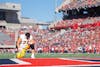 Redshirt senior offensive lineman Leif Fautanu (79) takes a knee in the end zone during the annual Territorial Cup game against U of A at Arizona Stadium on Nov. 30, 2024 in Tucson. ASU won 49-7.