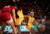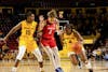 Junior guard Jalyn Brown (23) attempts to break through the defense on Saturday, March 1, 2025, at Desert Financial Arena in Tempe. ASU lost to rivals UA 71-59.