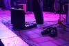 A pair of shoes sits by a pedalboard onstage at Battle of the Bands in Civic Space Park on Thursday, Feb. 27, 2025 in Phoenix.