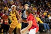 Graduate student guard Tyi Skinner (3) makes a fast break through the defense at Desert Financial Arena on Saturday, March 1, 2025, in Tempe. ASU lost 71-59.