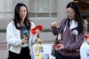 Estudiantes pasan tarjetas rojas de derechos civiles durante un taller “Conoce tus derechos” presentado por NHLSAA en ASU el martes 10 de febrero de 2026 en Tempe.