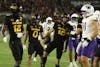 ASU junior running back Kyson Brown (1) kneeling before a game on Sunday, Aug. 31, 2025 at Mountain America Stadium in Tempe. Additional illustrations added Sept. 22, 2025.