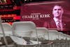 Empty chairs before Charlie Kirk’s memorial service at State Farm Stadium on Sunday, Sept. 21, 2025, in Glendale.