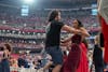 People in attendance of Charlie Kirk’s memorial service at State Farm Stadium on Sunday, Sept. 21, 2025, in Glendale.